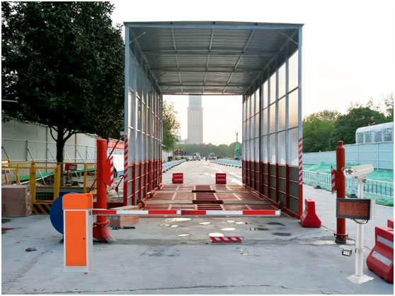 5:洗车机为全自动设计,防止泥土运输车走过场,不按时间清洗,洗完车后,挡车杆抬起车辆使出,档杆关闭,同时洗车系统关闭,带下下一车进入。